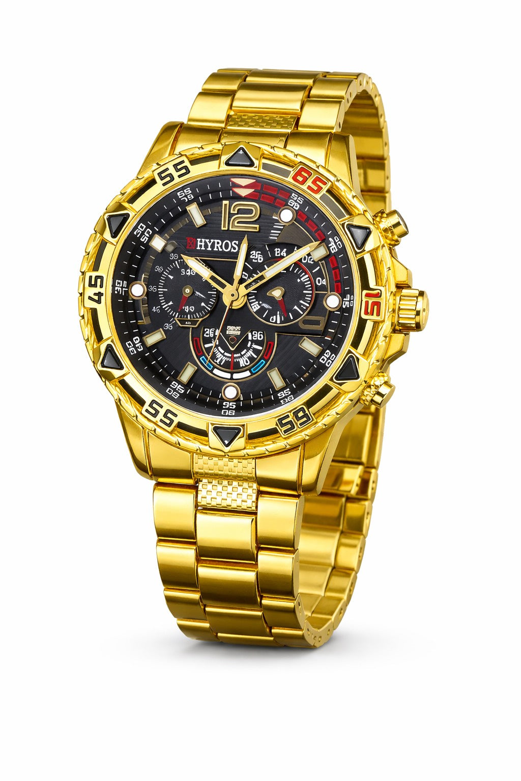 Phantom Gold is a sleek and sophisticated timepiece designed to make an unforgettable impression. Featuring a stainless steel case with a radiant gold finish and a mysterious black lens, this watch embodies the perfect balance of boldness and elegance. Built for durability and style, Phantom Gold seamlessly complements both casual and formal looks, offering a modern edge with timeless appeal. Step into the spotlight with Phantom Gold — where luxury meets stealth.